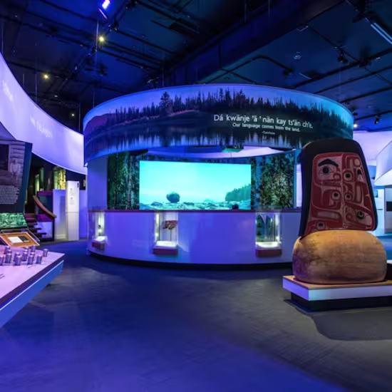 Step back in time within the 12,524 square feet of the Becoming BC Galleries, featuring Century Hall’s narrative of the past 200 years in British Columbia. The life-sized Old Town recreates Victoria as it was from the 1870s to 1920s, highlighting early industries such as forestry, fishing, and mining. Iconic structures like Fort Victoria and a replica of HMS Discovery provide an immersive historical experience.
